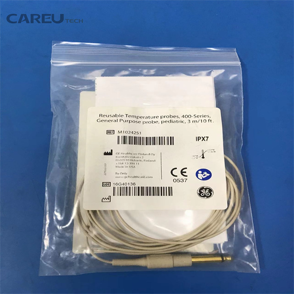 The GE M1024251 is a high-precision, medical-grade Reusable Skin Temperature Probe designed for continuous patient monitoring. It belongs to the industry-standard 400 Series thermistor family, ensuring high accuracy and compatibility with a wide range of GE Healthcare monitoring systems.